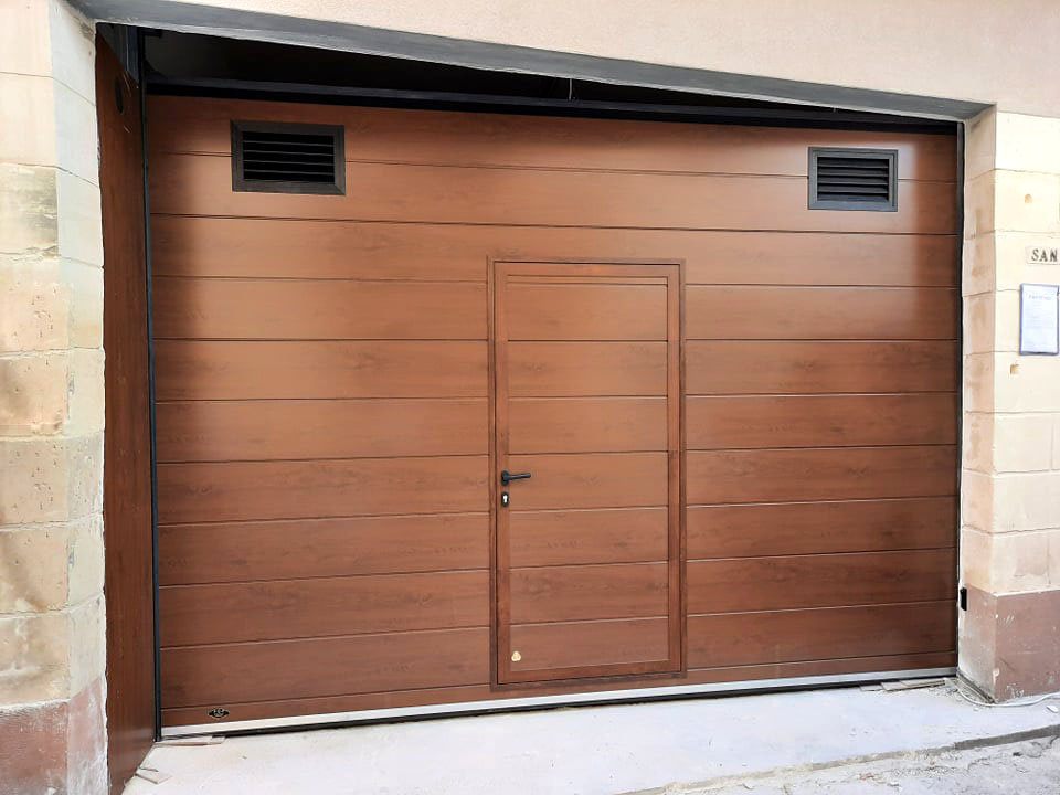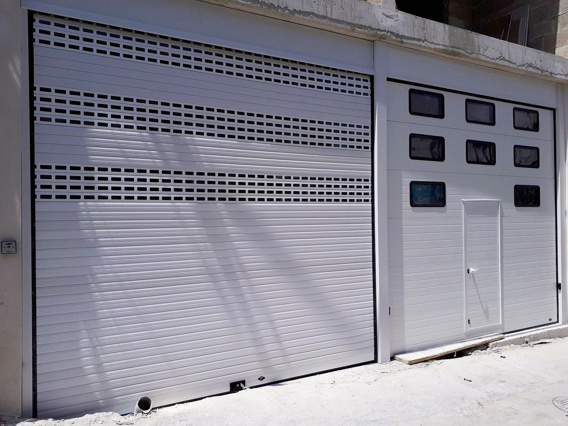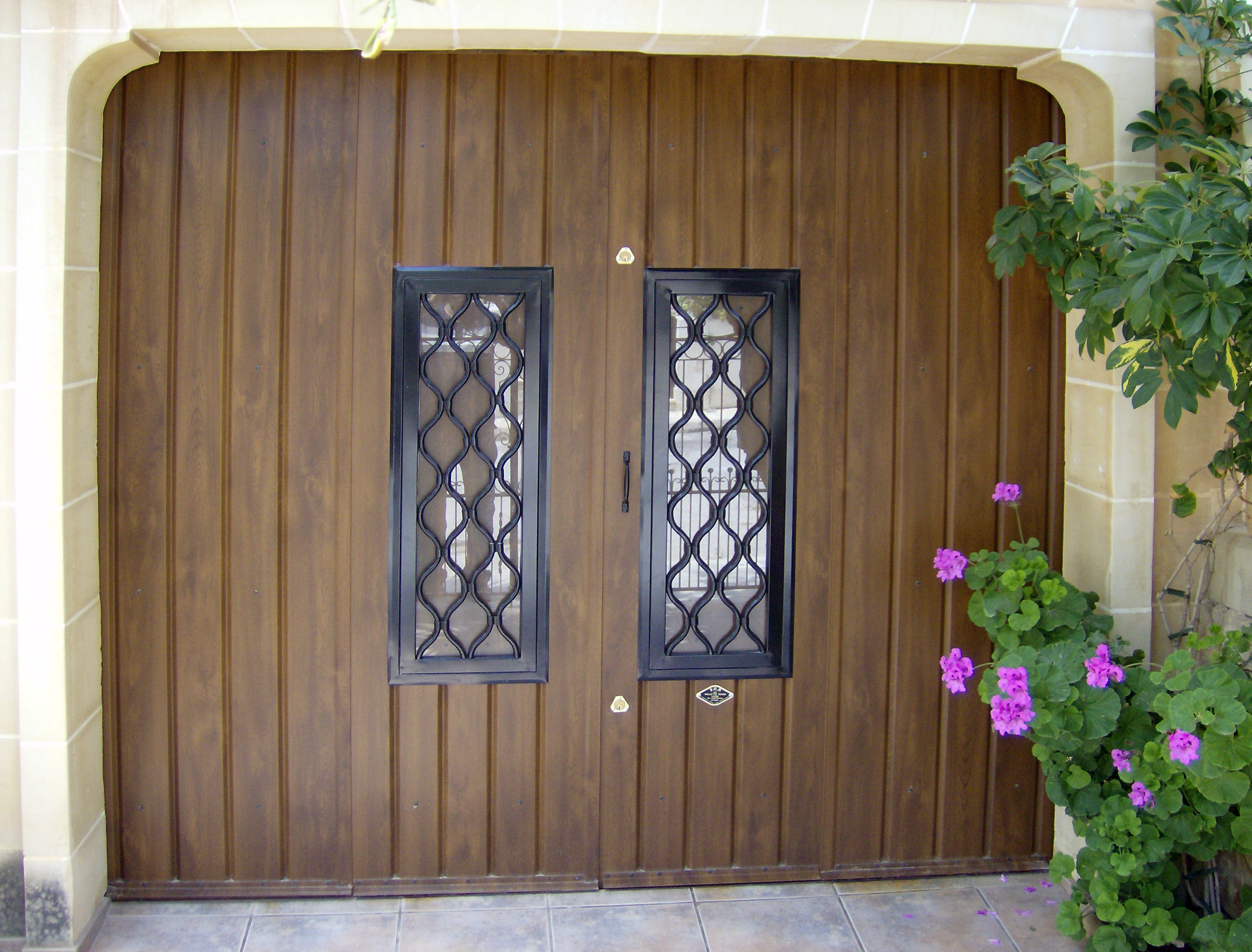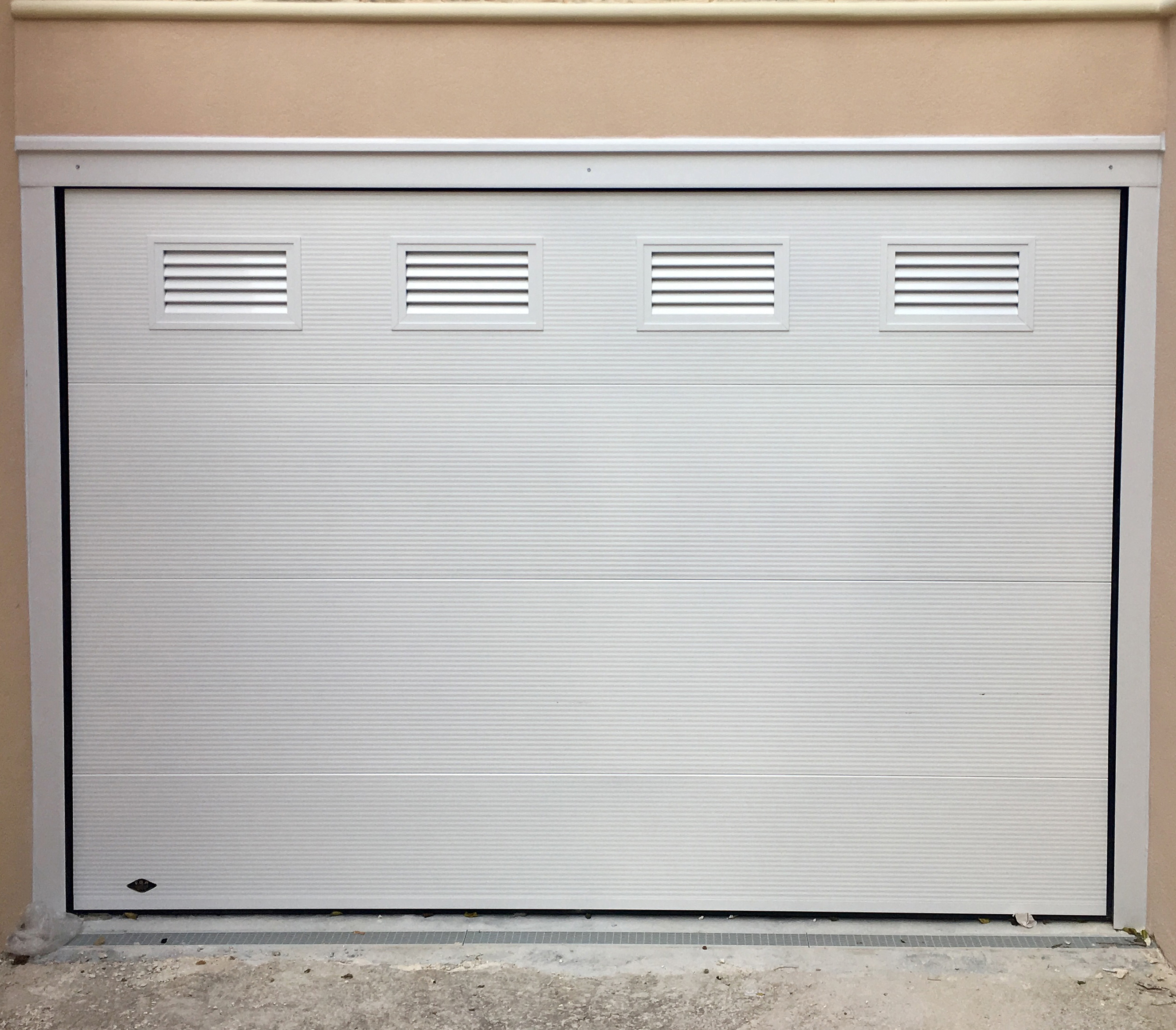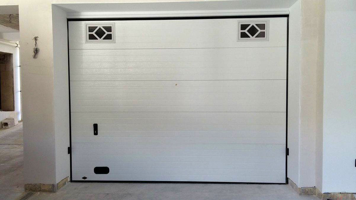 Manufactured using galvanised steel sheets in self or PVC finishes. Hinges are galvanised for long maintenance-free life. Doors are supplied with a multi-turn rim latch lock to provide all the security required. Doors can be fitted with a remote-controlled opener.